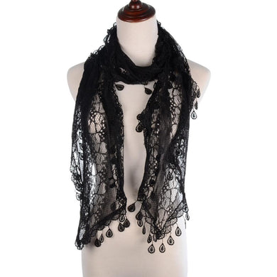 Fashion Lace Tassel Sheer Oblong Lightweight Scarf