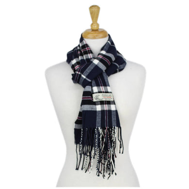 Plaid Cashmere Feel Scarf 12-pack Navy