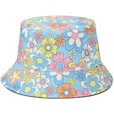 Reversible Butterflies Printed Bucket Hat - Light Blue