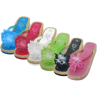 Wholesale Women's "Easy USA" Silk Flower Top Flip Flops (*Asst. 6 Colors)