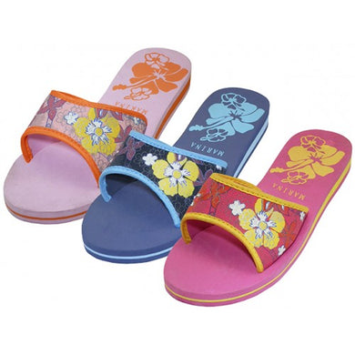 Wholesale Women's Floral Print Flip Flops (*Asst. Blue, Pink And Purple)