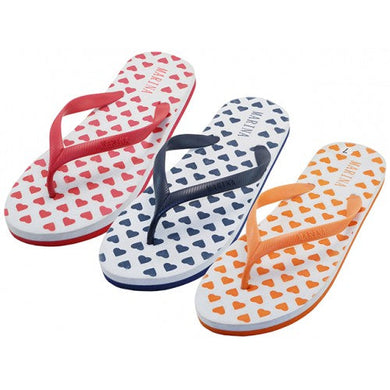 Wholesale Women's Heart Print Rubber Flip Flops (*Asst. Red, Orange & Navy)