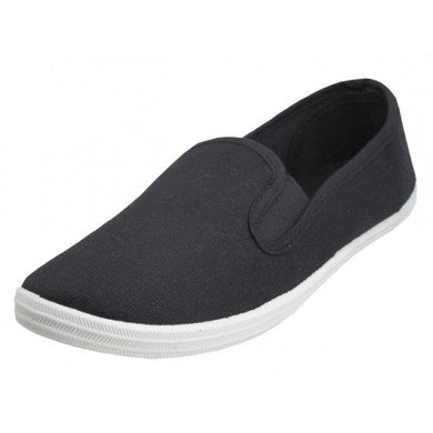 Wholesale Girls' Elastic Upper Comfortable Slip on Canvas Shoes (*Black Color)