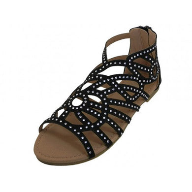 Wholesale Youth's "Easy USA" Rhinestone Top Gladiator Sandals (*Black Color)