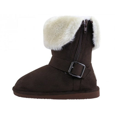 Wholesale Youth's Micro Suede Fold Over Boots with Faux Fur Lining & Side Zipper Warmest Winter Boots (*Brown Color)