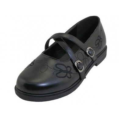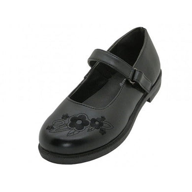 Wholesale Youth's "Easy USA" Pu Upper with Embroidery Flower on Top Black Mary Jane School Shoes (*Black Color)