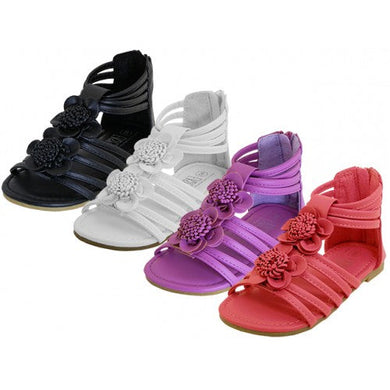 Wholesale Girl's "Easy USA" Flower Top Gladiator Sandals (*Asst. Black, White, Purple & Red)