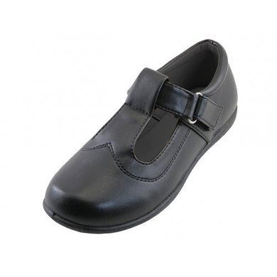 Wholesale Big Girl's "Easy USA" PU Upper T-Strap Velcro Mary Jane Black School Shoes (*Black Color)