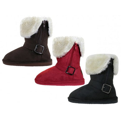 Wholesale Youth's Micro Suede Fold Over Boots with Faux Fur Lining and Side Zipper Warmest Winter Boots (*3 Assorted Colors)
