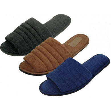 Wholesale Men's "Easy USA" Cotton Terry Upper Open Toe House Slippers (*Asst. Black, Brown & Navy)