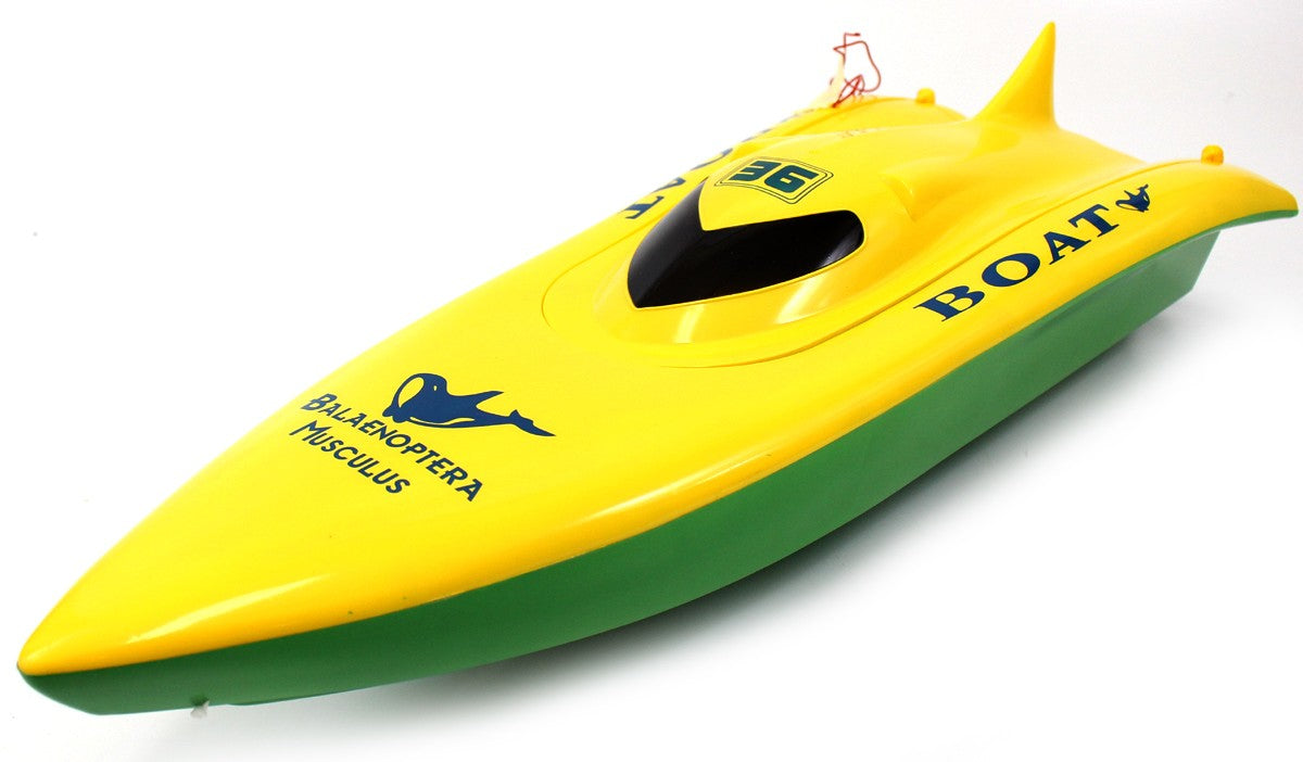 Features: -Pre-assembled high performance RC racing boat -Twin motor system -Powered by two 380 type racing motors -Professional large torsion twin propeller system -Vector push design -100% metal actuating mechanism which makes it very durable -Show Stand included -one set extra propeller included -7.2v rechargeable battery included -AC charger included -Transmitter (requires 8 "AA" batteries not included)