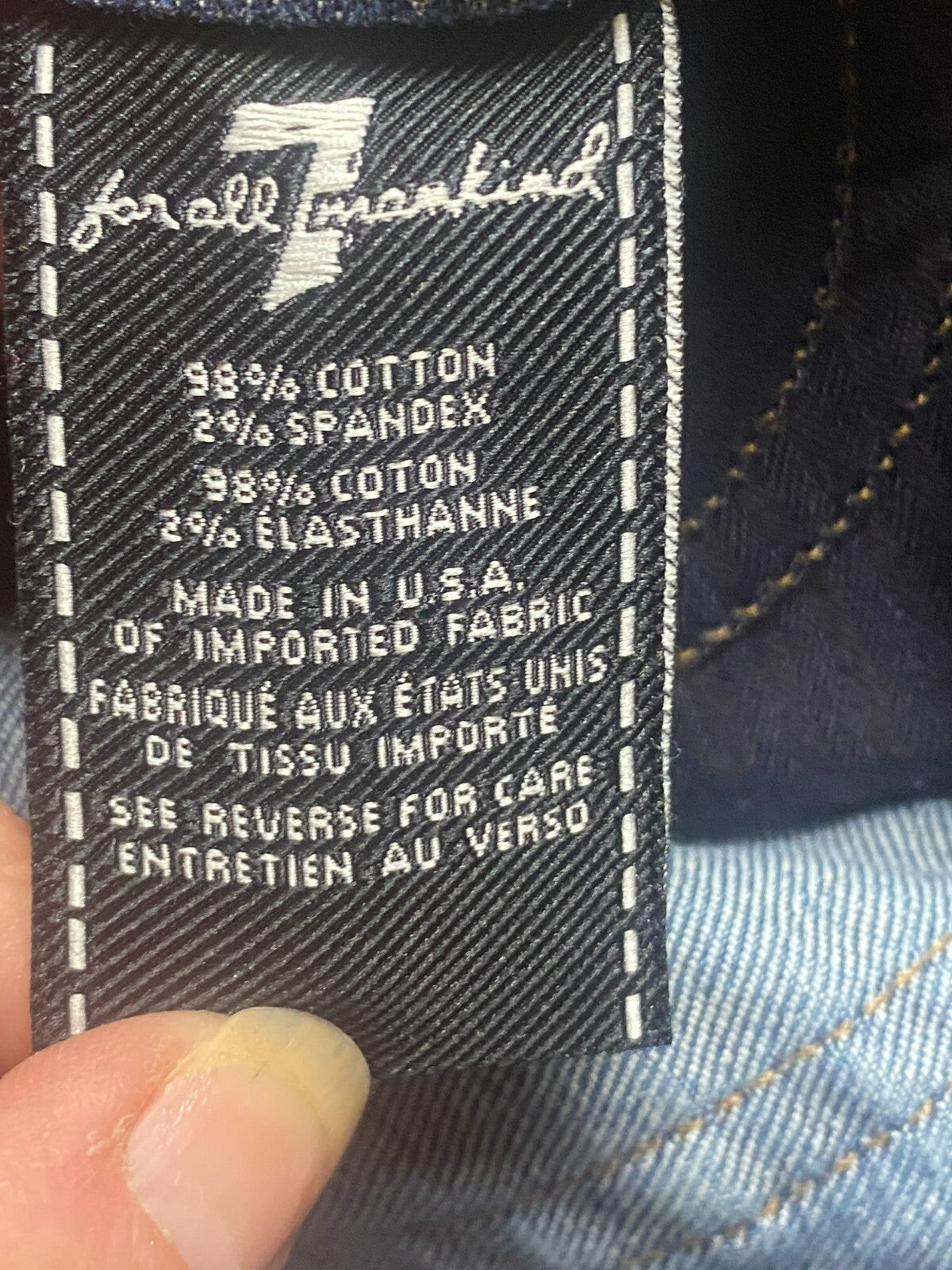 7 For All Mankind Jeans Womens 29x29.5 Whiskered Skinny Spandex Stretch Denim