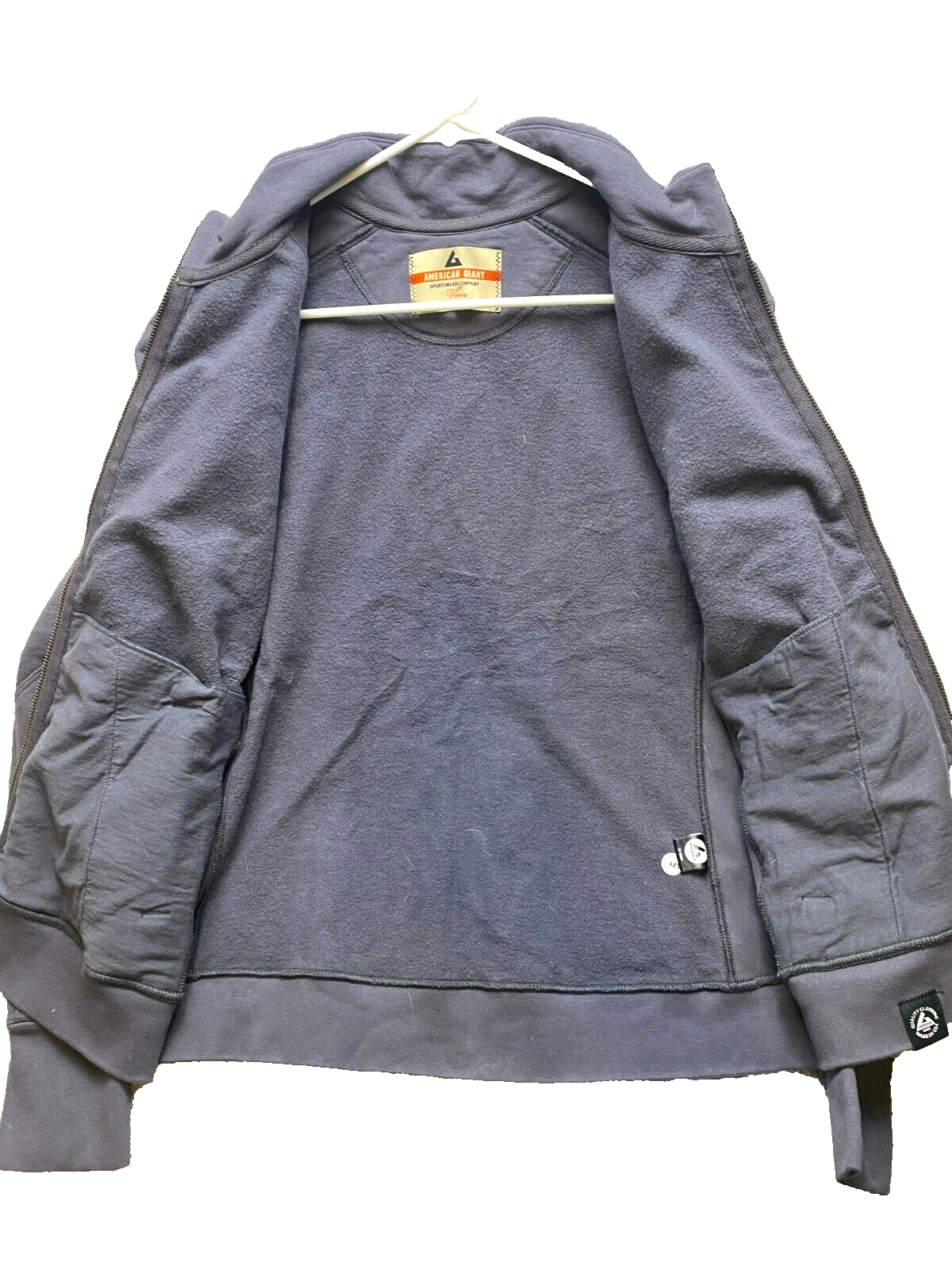 American Giant Jacket Womens Extra Large Gray Full Zip Mock Neck Fleece USA Moto