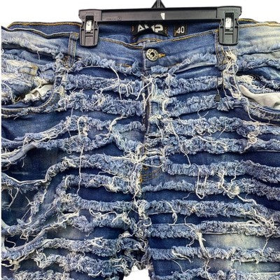 Keywords: distressed jeans, ripped jeans, destroyed jeans, mens jeans, denim jeans, fashion jeans, blue jeans, size 40 jeans, statement jeans, unique jeans, trendy jeans, urban style, streetwear, menswear