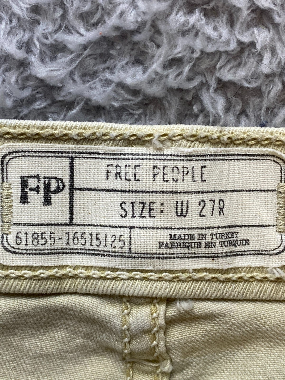 Free People Jeans Womens 27x25.5 Beige Destroyed Tapered Leg 5 Pockets Ladies