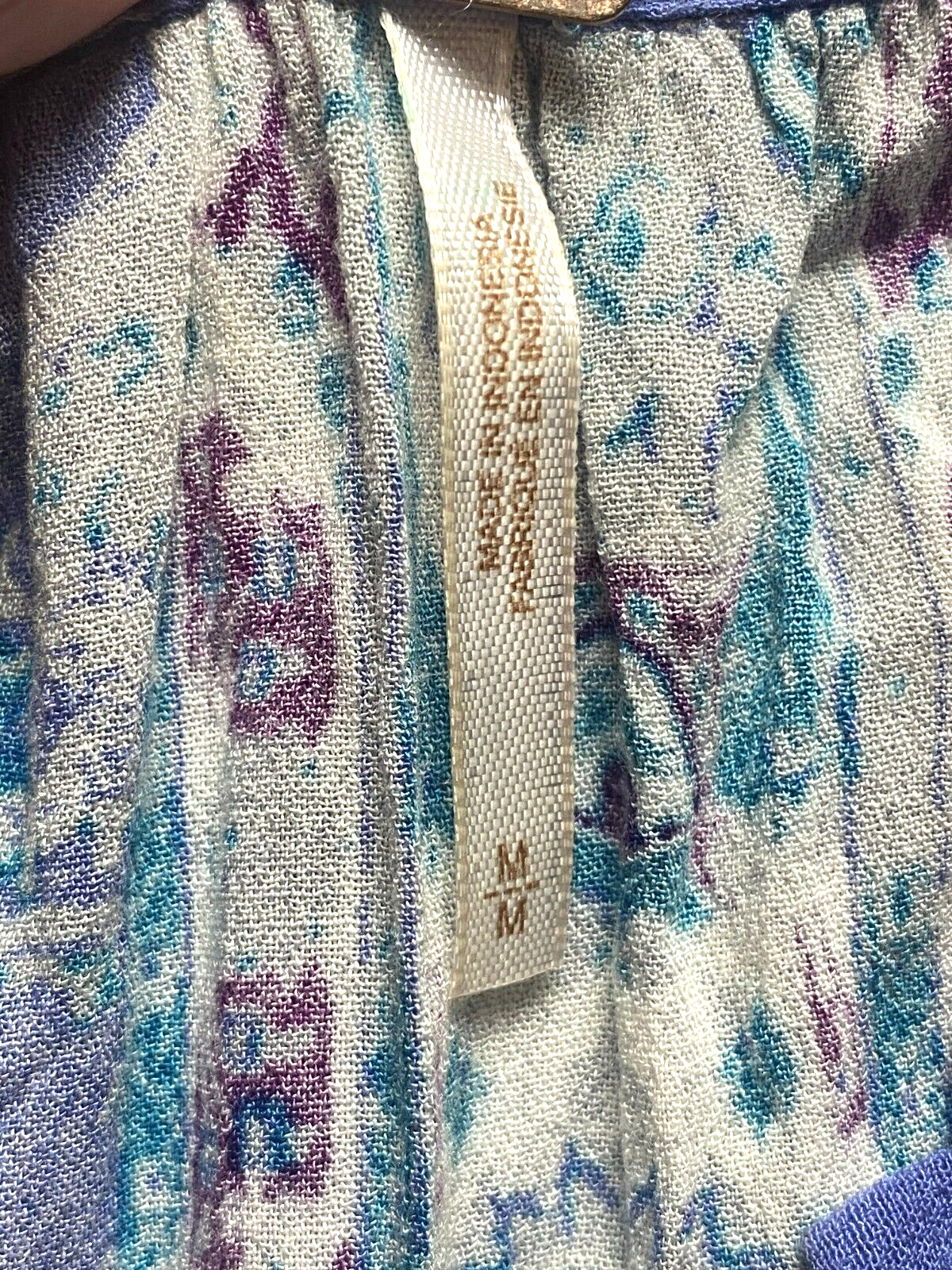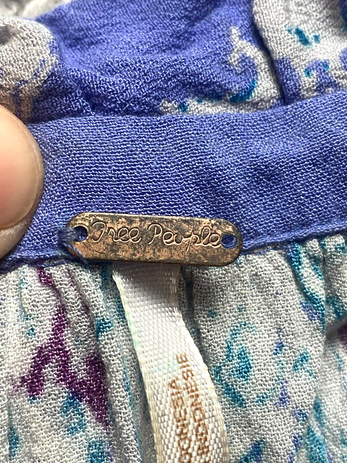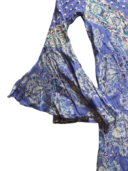 Free People Shirt Womens Medium Blue Magic Mystery Hippie Bell Sleeve Boho