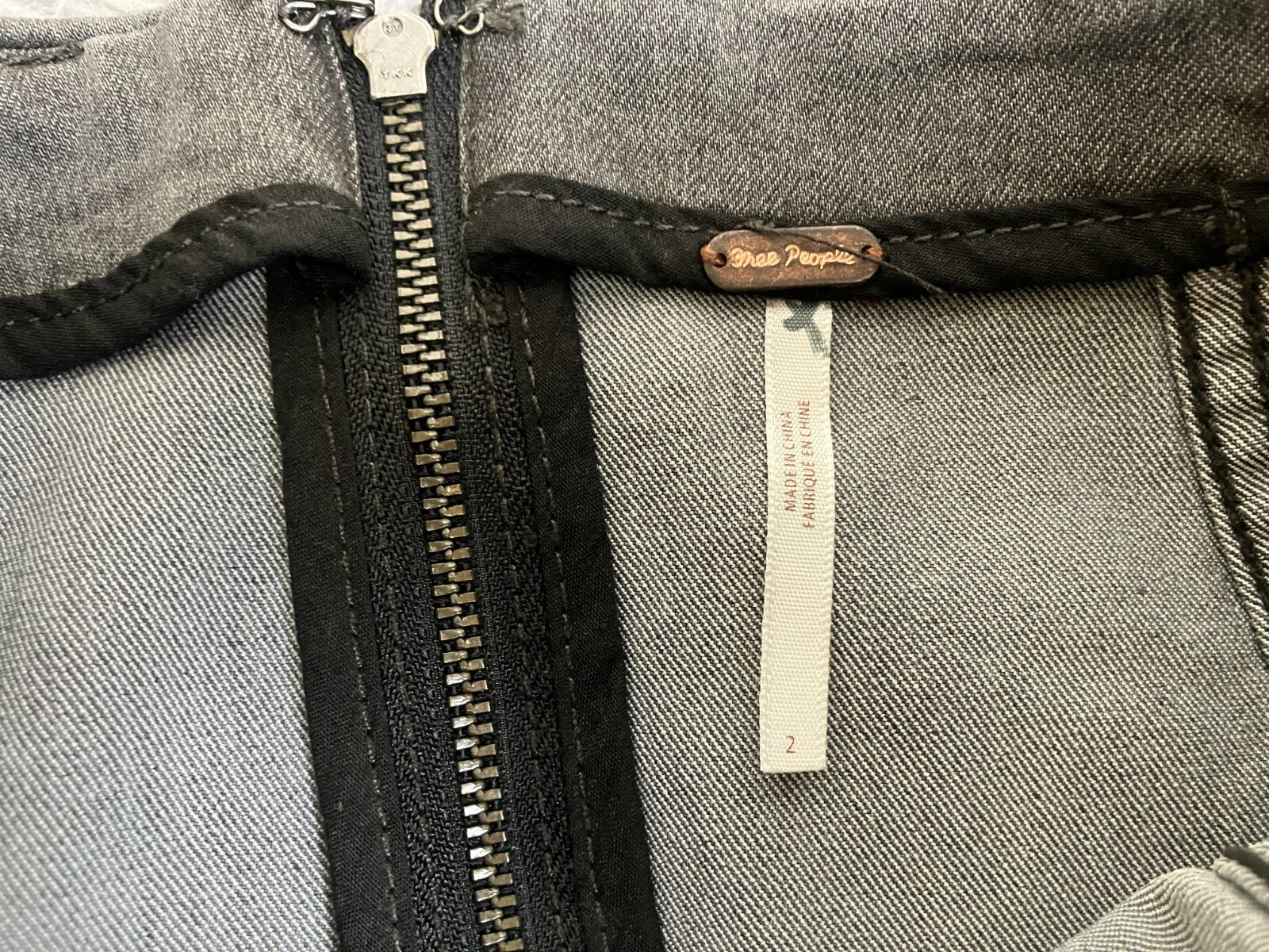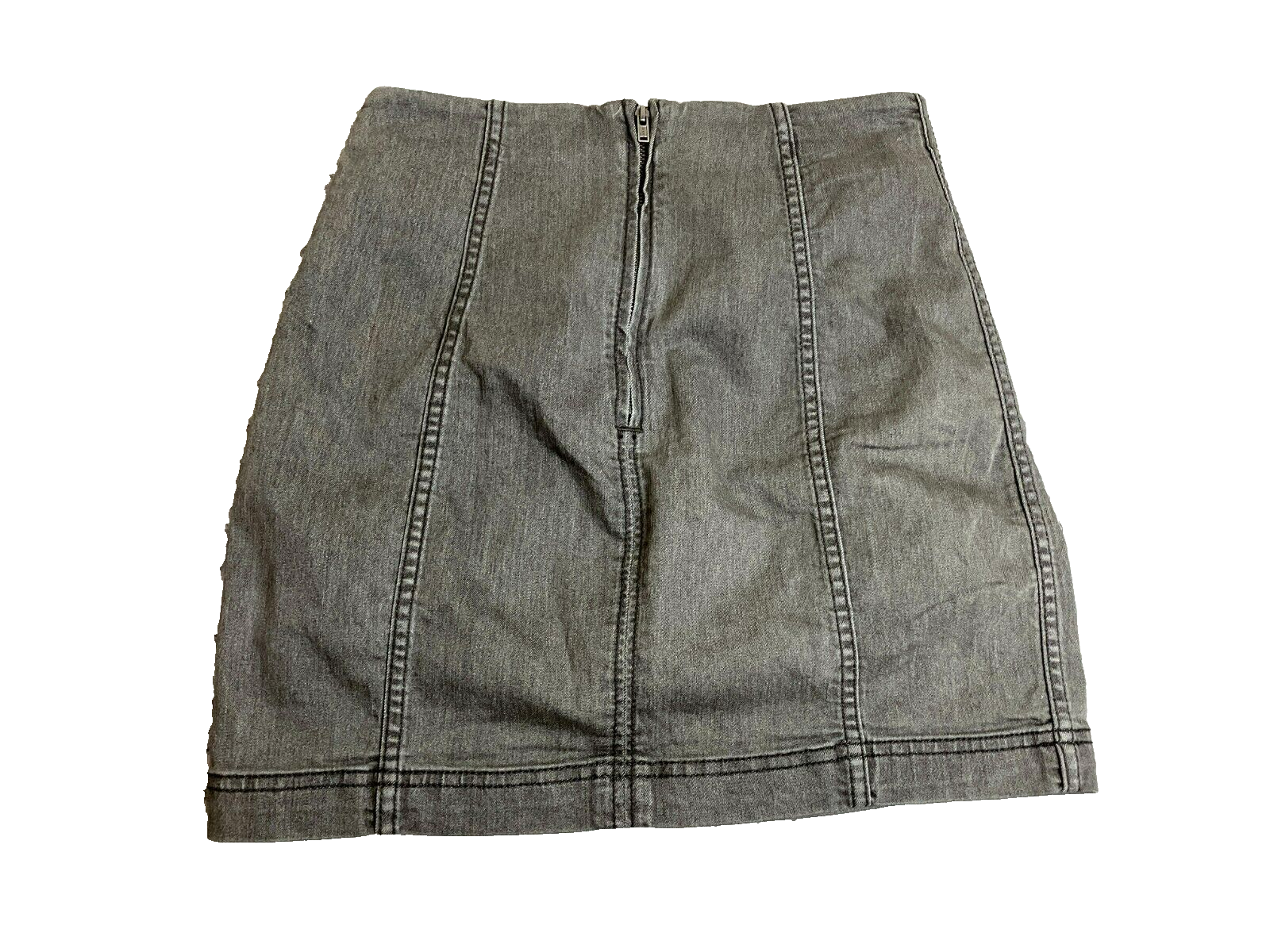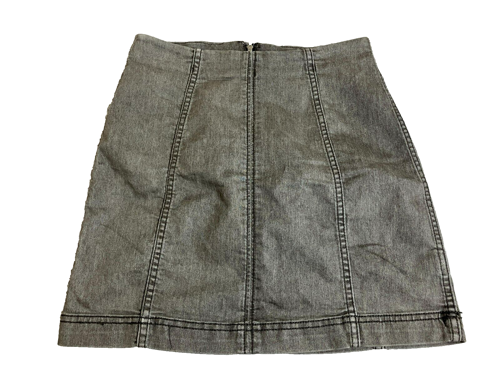 Free People Skirt Womens 2 (25x15) Black A-Line Back Zip Stretch Mini Denim Lady
