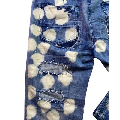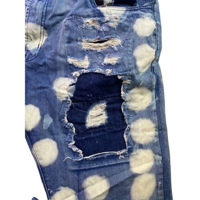 Keywords: FWRD, Denim, Jeans, Mens, 44, Blue, Bleached, Distressed, Ripped, Patched, Polka Dot, Cotton, Streetwear, Casual, Unique