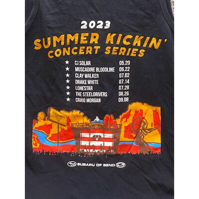 Rock this unique tank top featuring a bold design on both sides! The front showcases the iconic General Duffy's Waterhole logo, while the back commemorates the 2023 Summer Kickin' Concert Series sponsored by Subaru of Bend, listing all the artists and dates. This tank is a statement piece that combines local pride with a love for live music. Imagine yourself wearing this to a casual summer barbecue, a local concert, or even just while running errands around town, showing off your unique style and appreciation for good times.