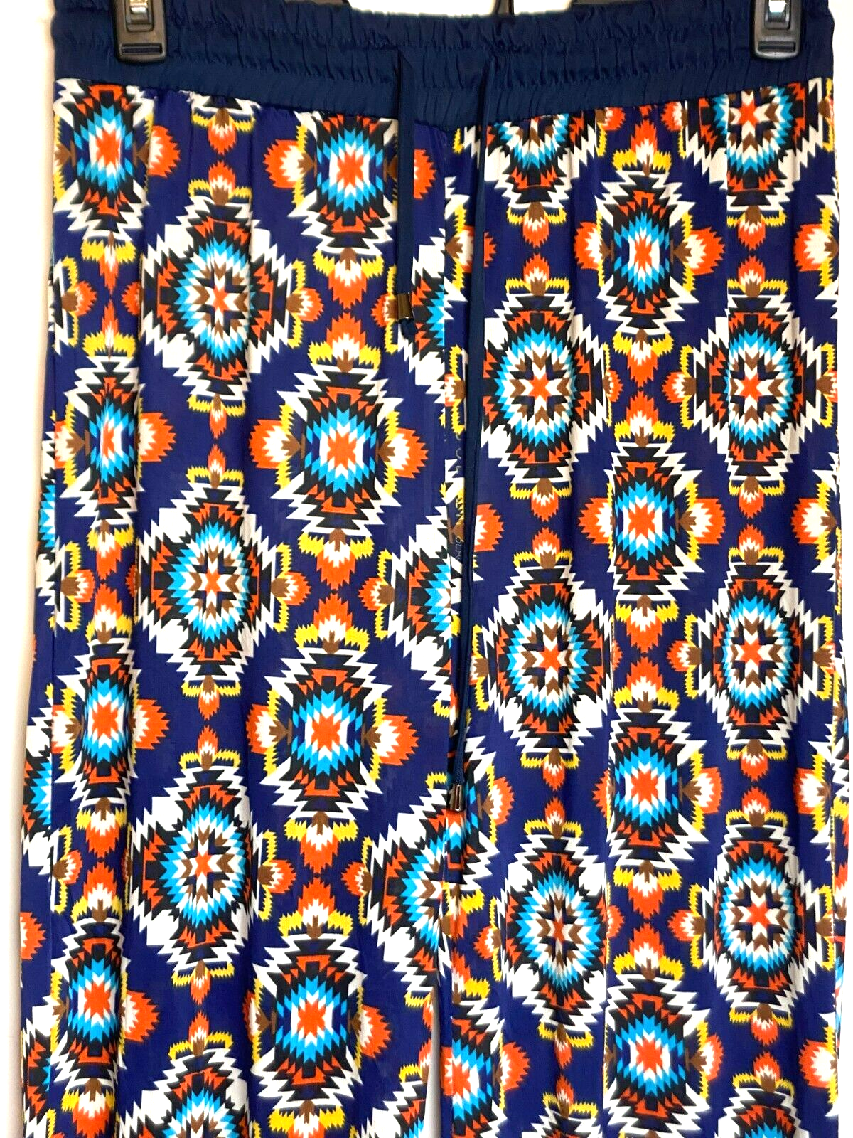 Golden Black Pants Womens 1X (32x28) Geometric AOP Festive Boho Spandex Plus NWT
