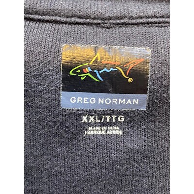 Keywords: Greg Norman, pullover, quarter zip, sweater, shark logo, golf, golfing, menswear, casual, sportswear, XXL, black, long sleeve, preppy, athletic