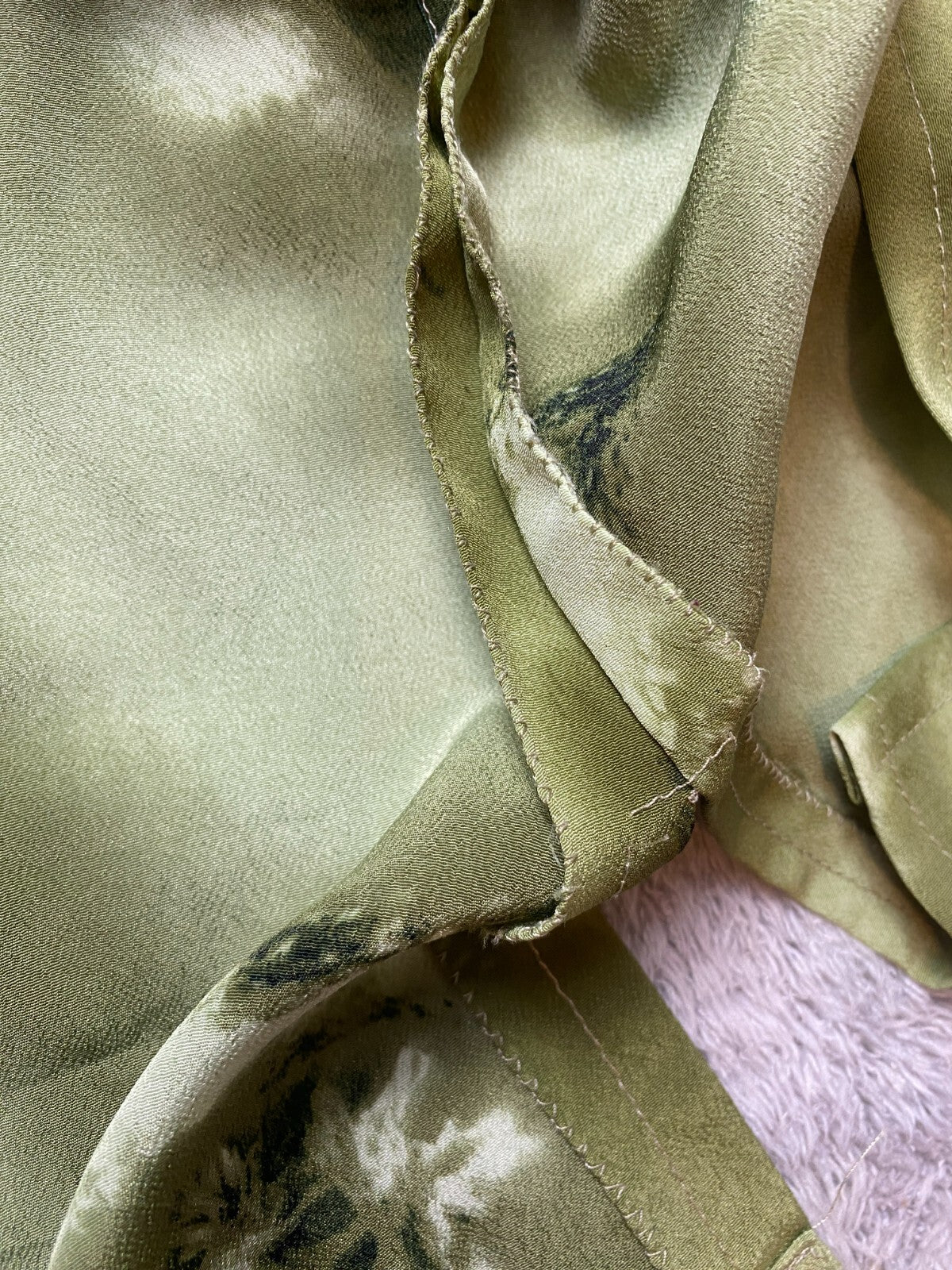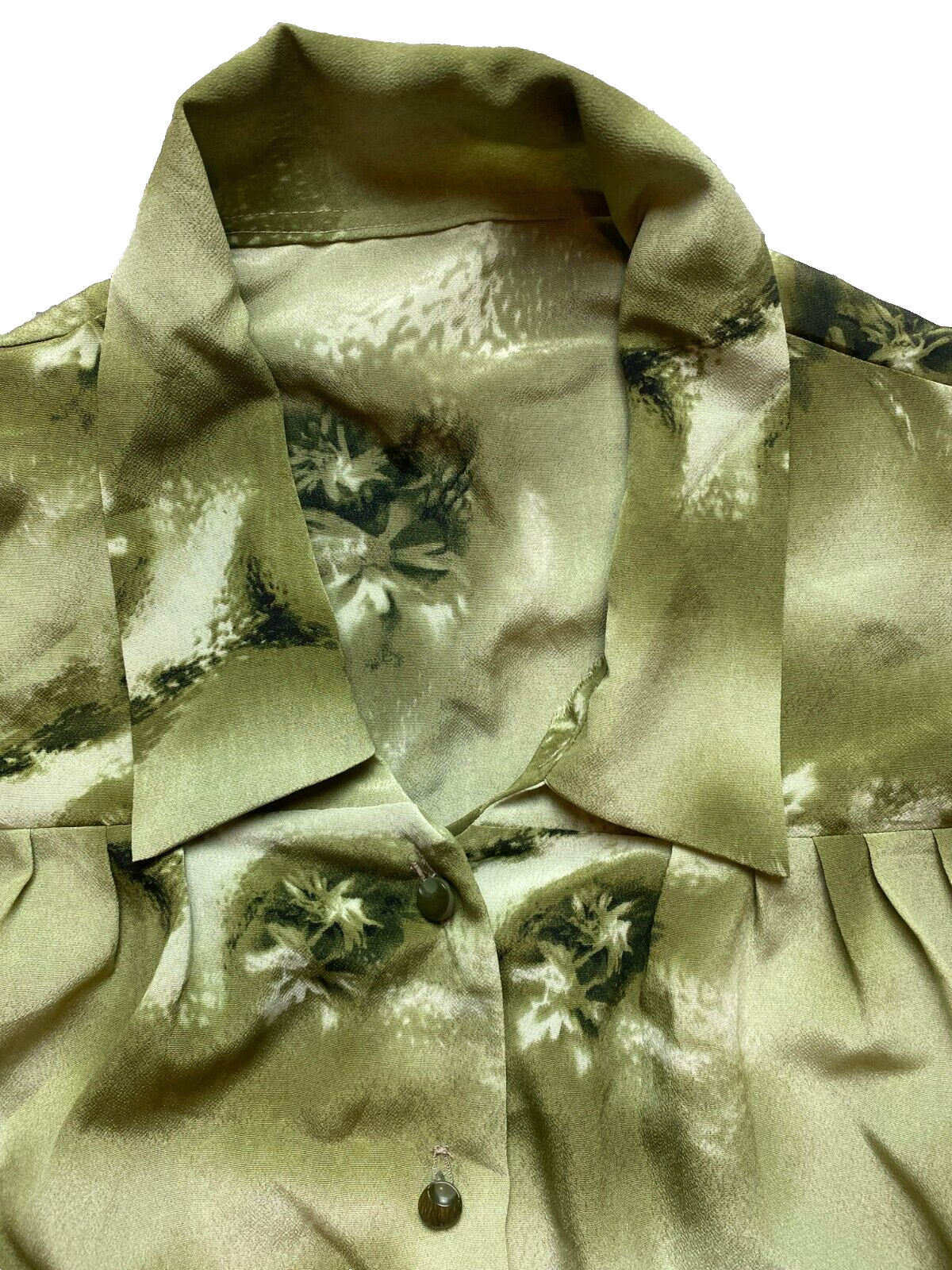 Handmade Shirt Womens 3X Green Button Up AOP Peasant Boho Whimsical Plus Ladies