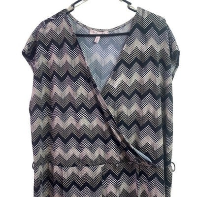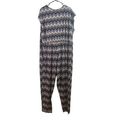 Keywords: Harlow & Rose, Jumpsuit, Chevron Print, Plus Size, 3X, Sleeveless, Casual, Wrap Front, Black, Gray, Women's Fashion, Comfortable, Relaxed Fit