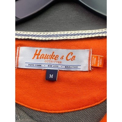 Keywords: Hawke & Co, mens sweatshirt, gray pullover, long sleeve, casual wear, medium size, button placket, mens top, orange collar, sweatshirt, comfortable, everyday wear