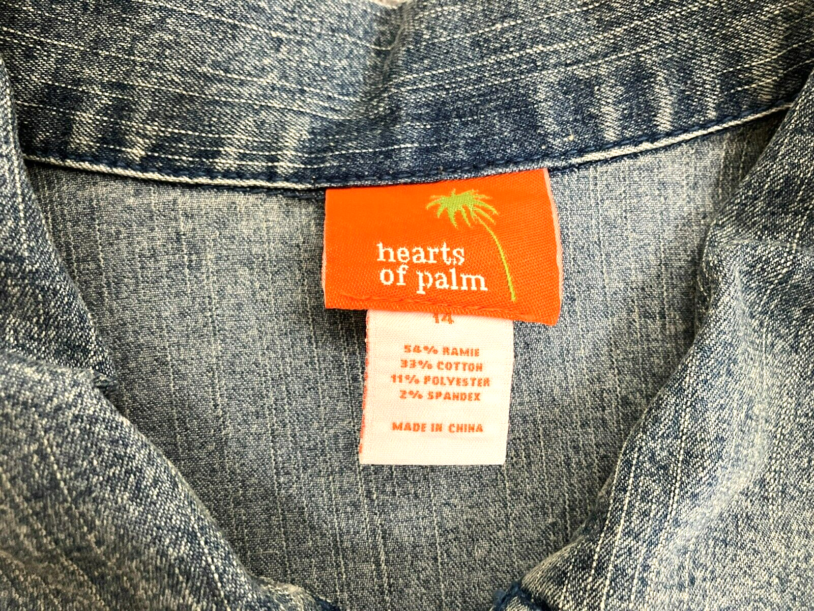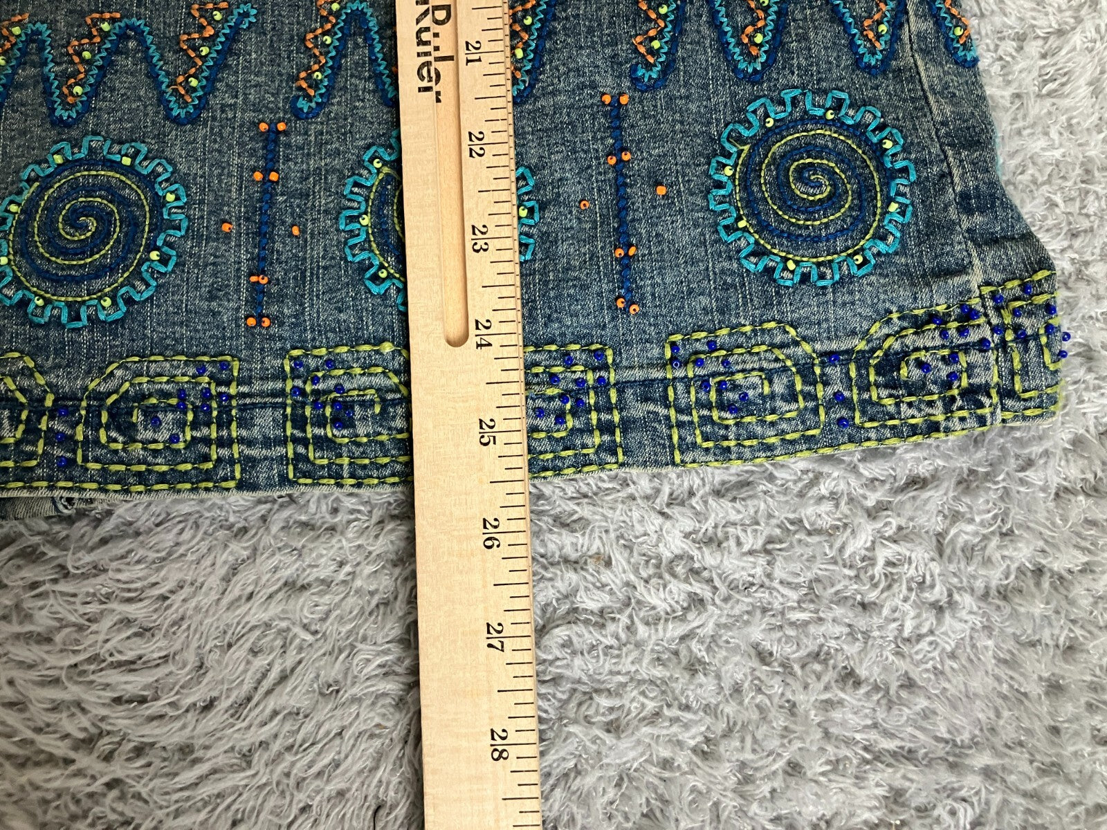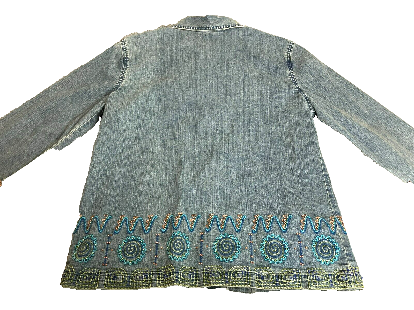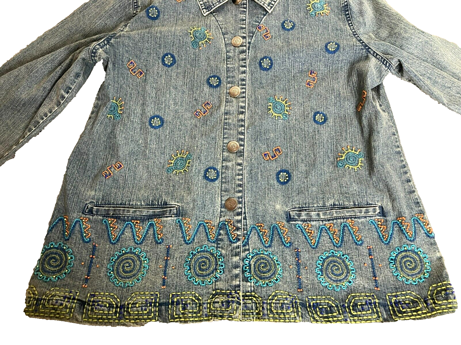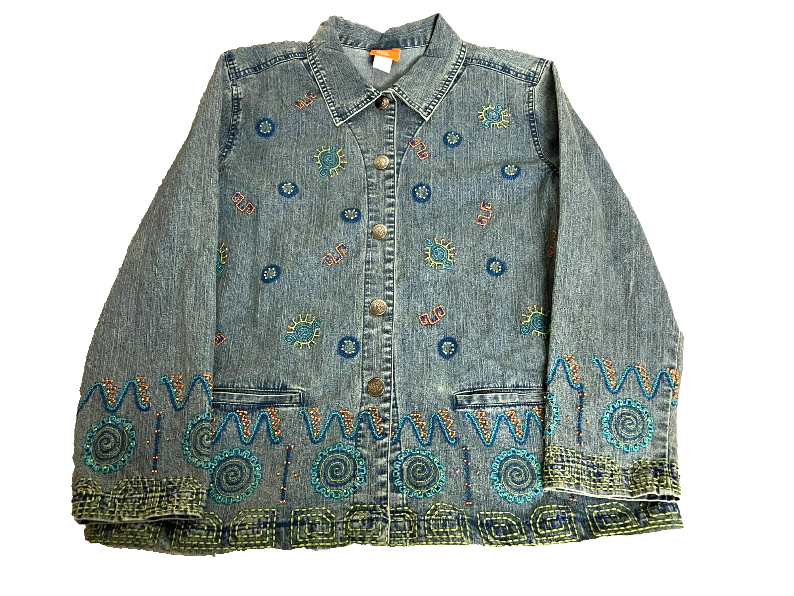 Hearts of Palms Jacket Womens 14 3XL Button Front Denim Jean Aztec Embroidered