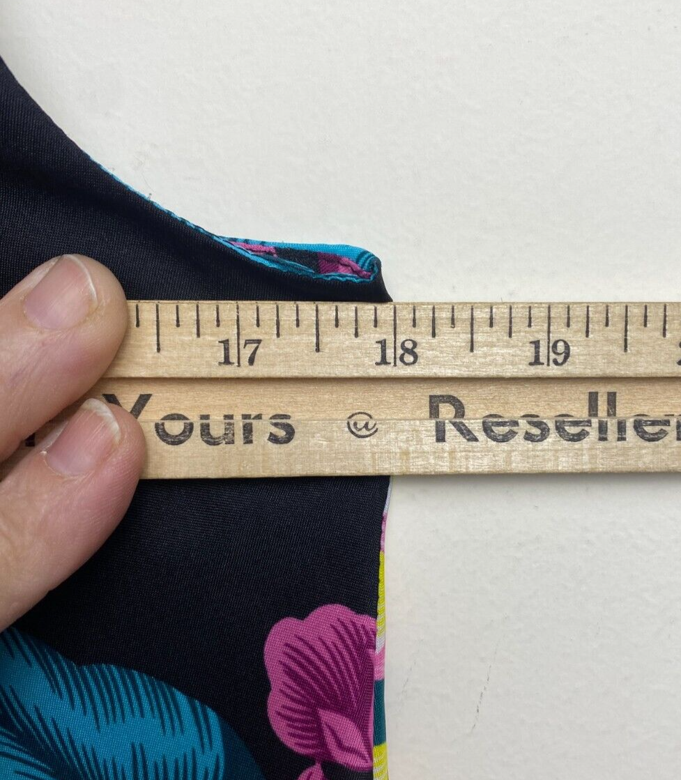 Hilo Hattie Dress Womens Medium Black Teal Floral Hawaiian Tropical Midi