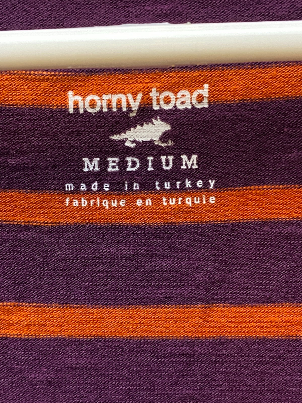 Horny Toad Shirt Womens Medium Purple Orange Stripes Organic Tencel Spandex Lady