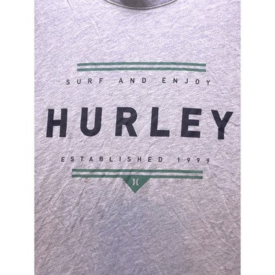 Keywords: Hurley, T-shirt, Graphic Tee, Surf, Casual, Mens, XL, Extra Large, Gray, Cotton, Short Sleeve, Crew Neck, Surf and Enjoy, Established 1999