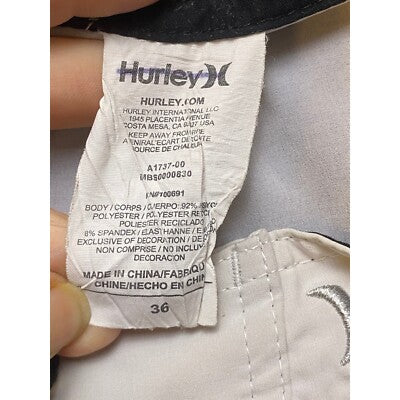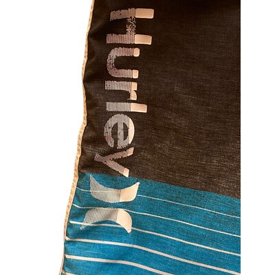 Hurley Shorts Mens Size 36 Surfing Board Spellout Logo Beach Stripe Drawstring
