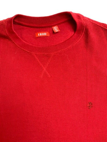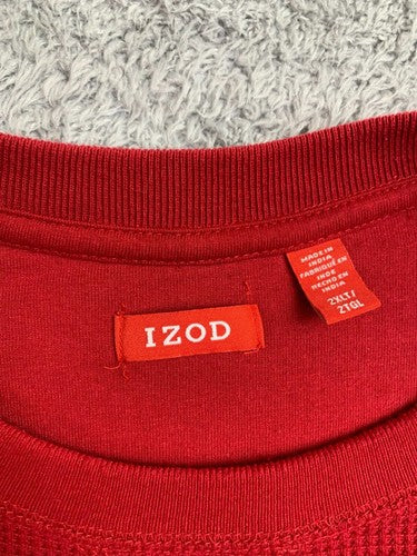 IZOD Shirt Adult 2XLT Red Waffle Knit Thermal Crew Neck Embroidered Logo Mens