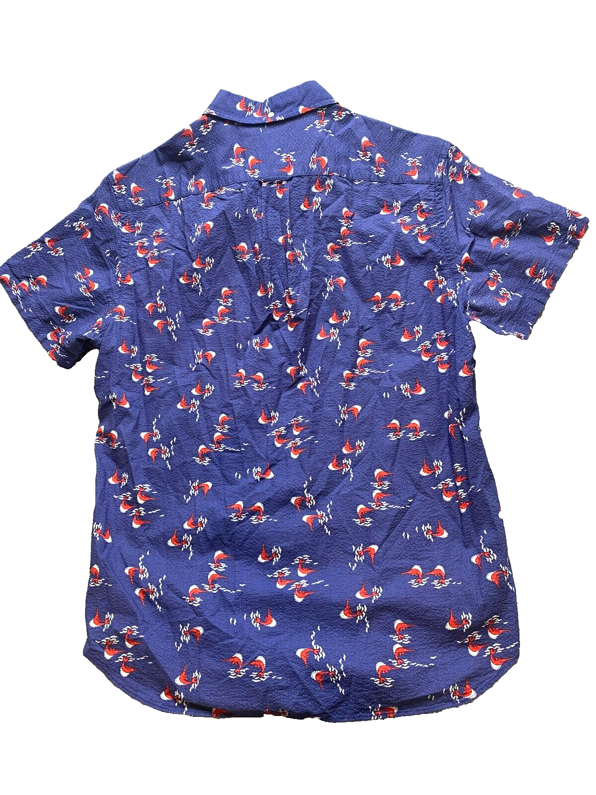J Crew Shirt Adult Medium Blue Button Up AOP Long Nose Fish Casual Collared Mens