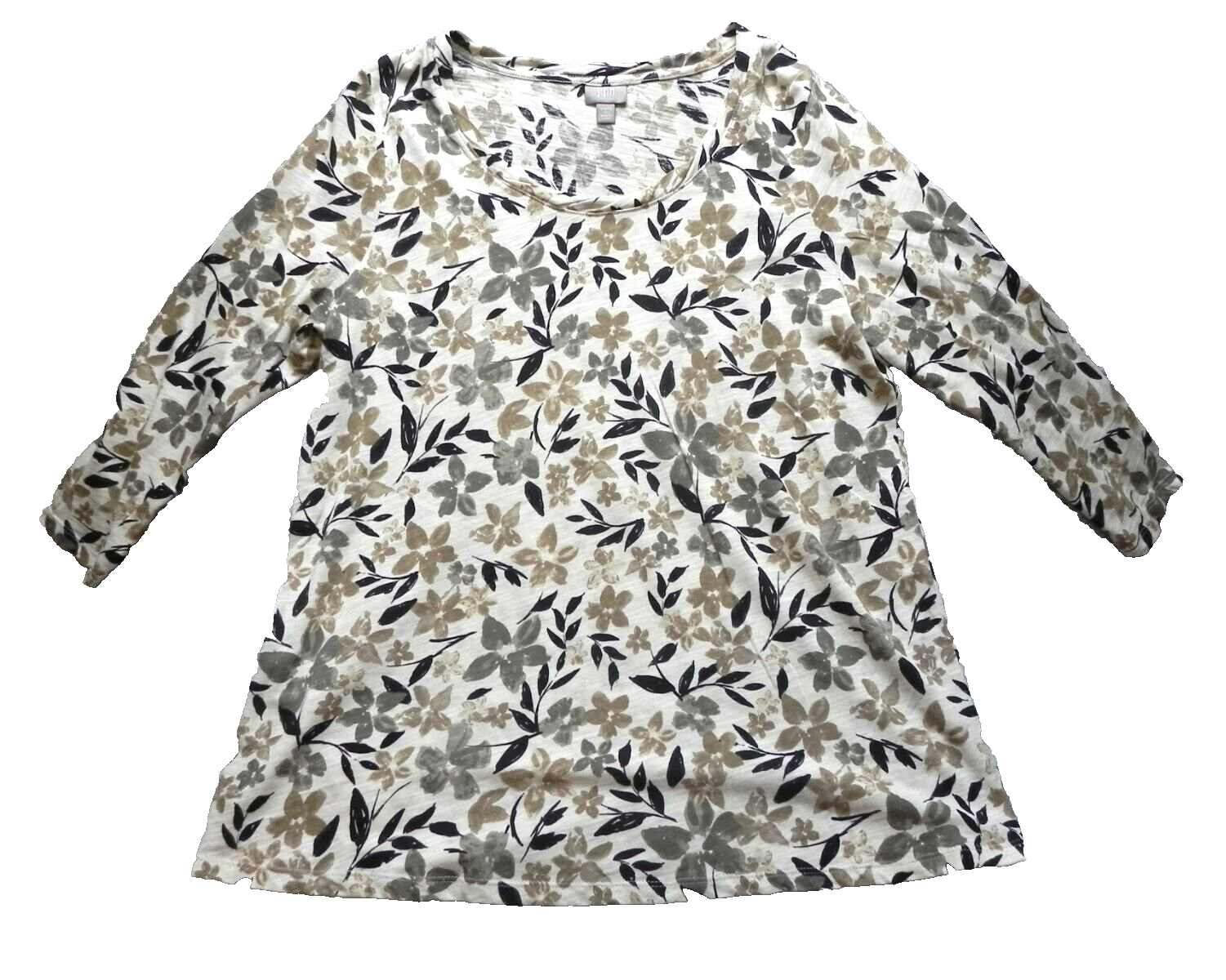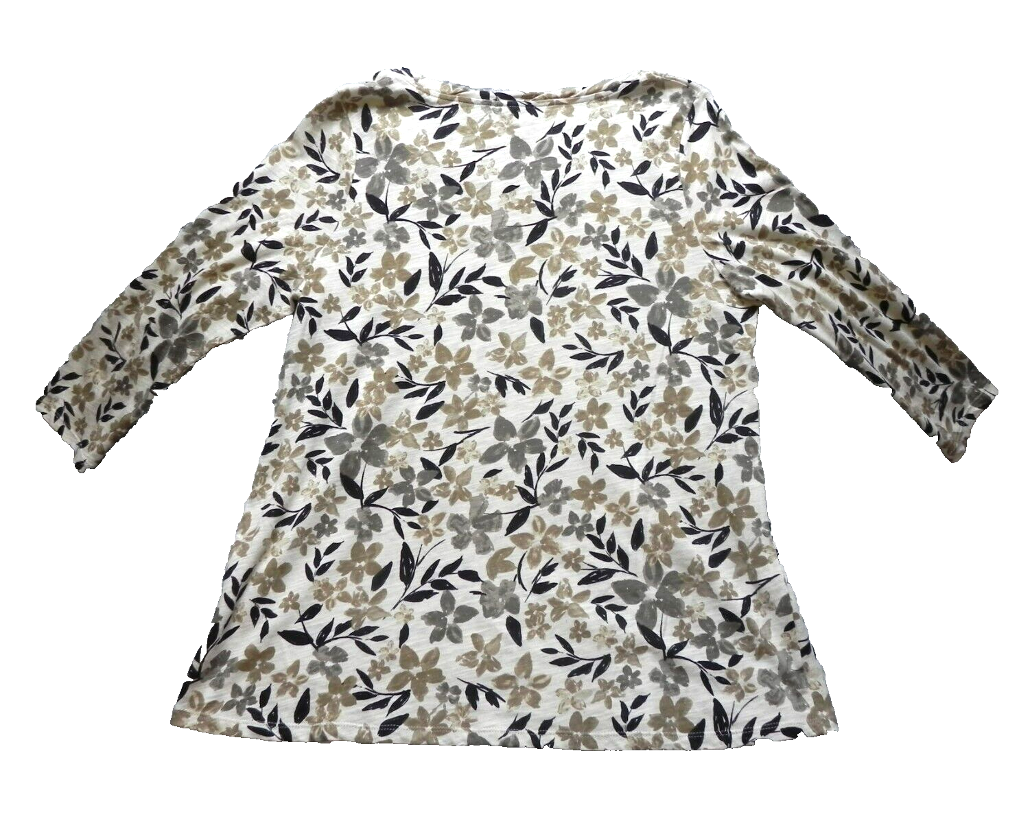J Jill Shirt Womens Large Allover Print Leaf Floral Stretch Blouse Casual Ladies