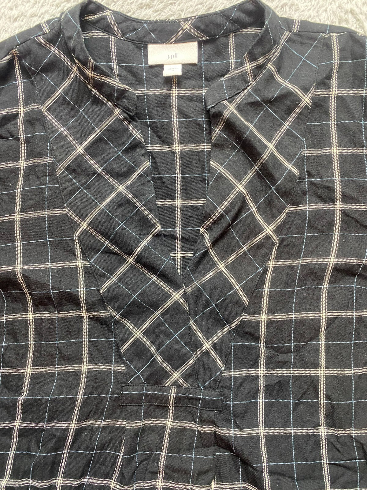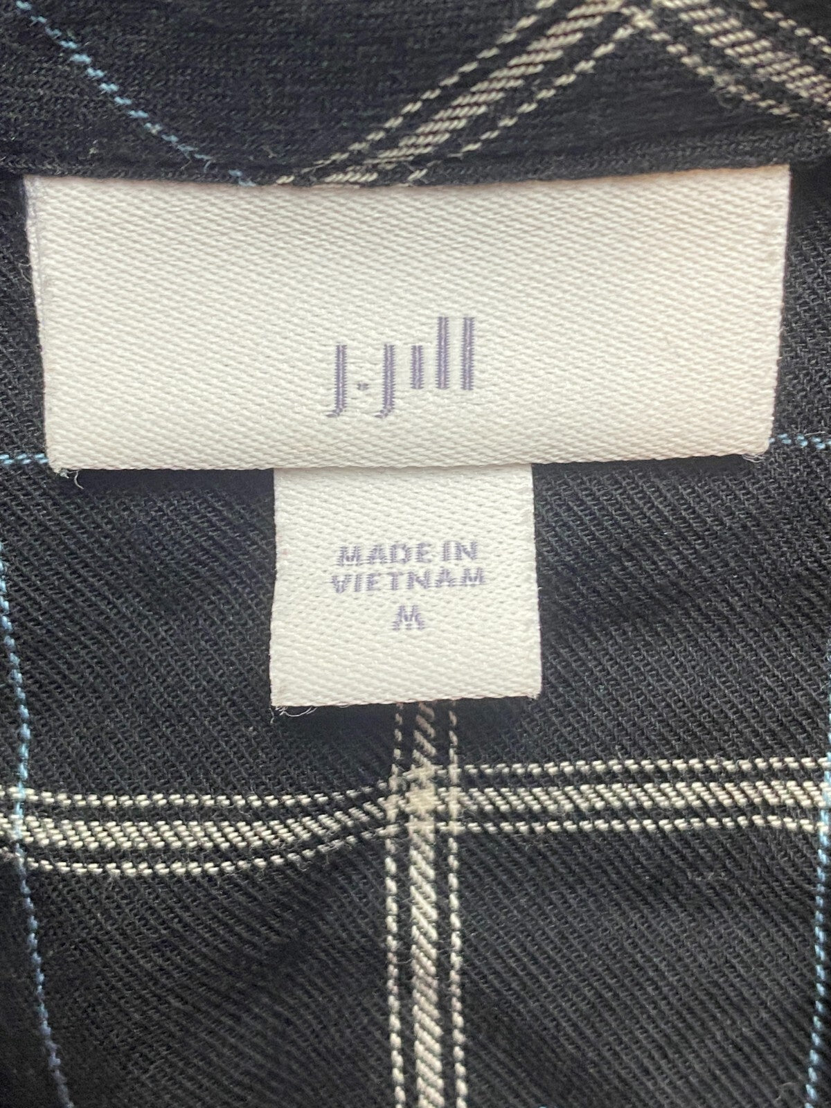 J Jill Shirt Womens Medium Black Windowpane Tunic Oversized Casual Blouse Ladies