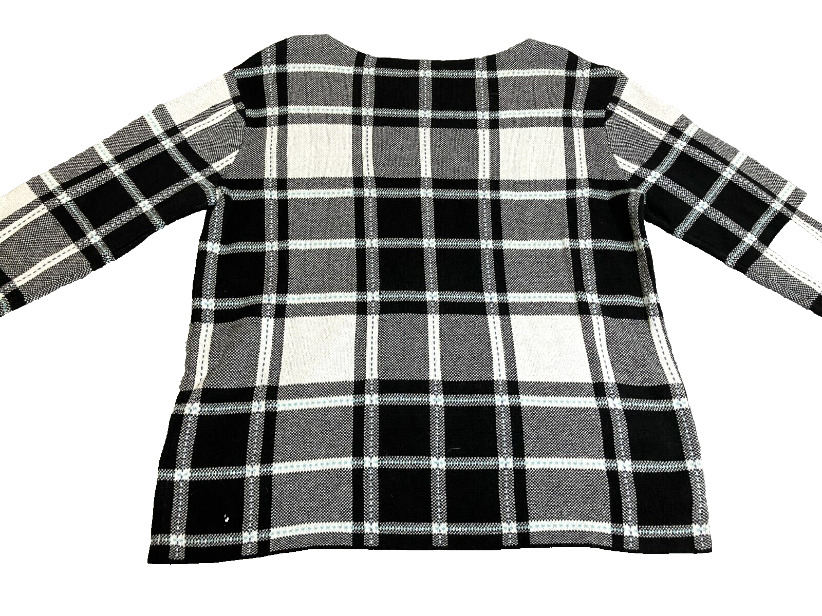 J Jill Sweater Womens Medium Black White Knit Oversized Boxy Outerwear Ladies