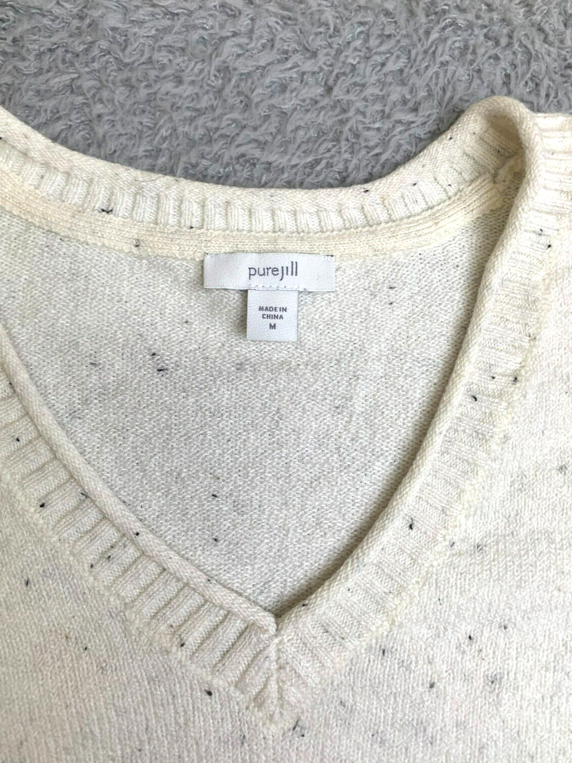 J Jill Sweater Womens Medium Off White V-Neck Oversized Boxy Outerwear Ladies