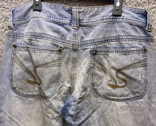 Jessica Simpson Jeans Women 14 (36x30) DISTRESSED Light Wash Embroidered Rose