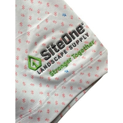 Elevate your golf game with this sophisticated polo, where performance meets style. A crisp white backdrop showcases a playful pattern of coral and blue, subtly evoking a coastal vibe. The moisture-wicking fabric ensures you stay cool and comfortable whether you're on the green or enjoying a casual day out. The SiteOne Landscape Supply logo adds a unique, professional touch, making it perfect for corporate events or showcasing your support for the brand. This polo features UPF 50 sun protection, offering comfort and safety under the sun. Ideal for a day on the golf course, a business-casual meeting, or weekend outings.