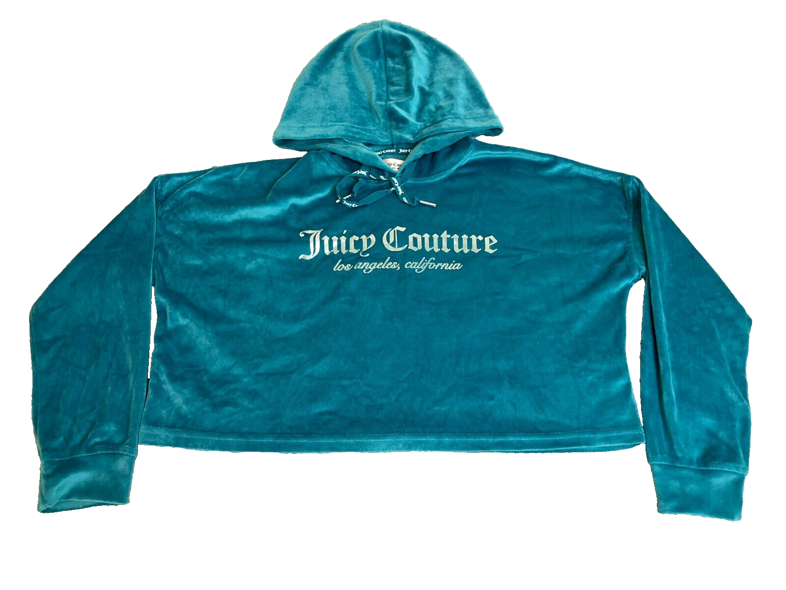 Juicy Couture Sleepwear Womens Small Teal Velour Crop Spandex Hoodie Oversized