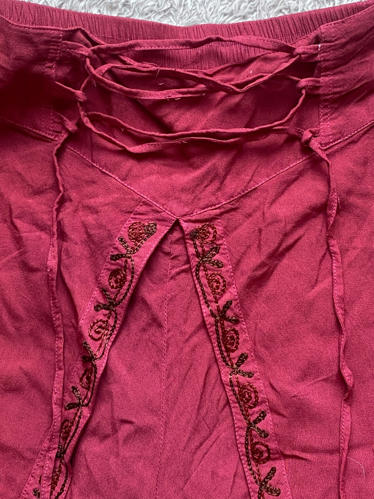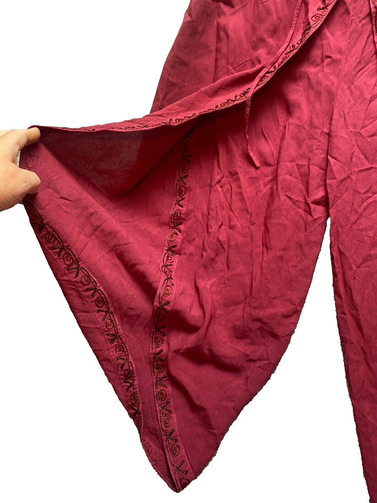 Just Cruising Pants Womens Free Size (30x20) Boho Wide Leg Embroidered Cruise