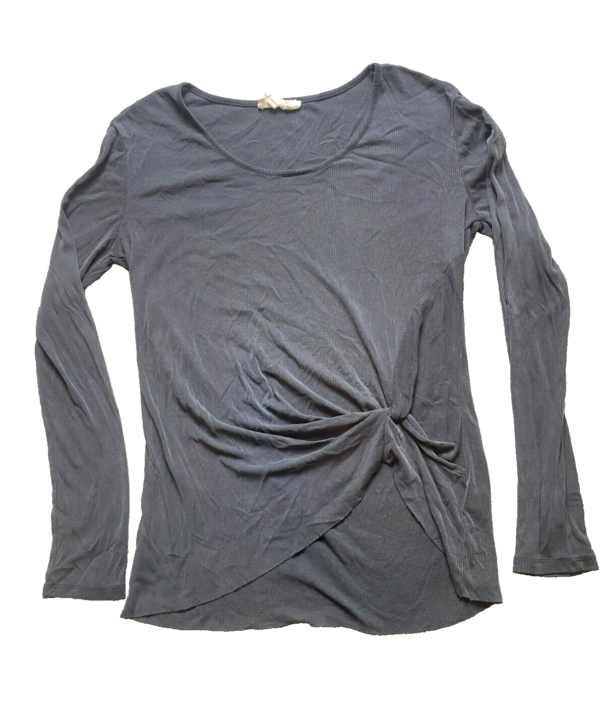 Korye Shirt Womens Small Slate Gray Twisted Knot Modal Blouse Casual Ribbed Lady
