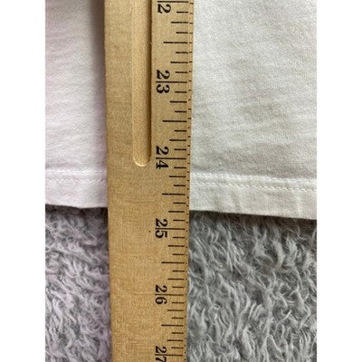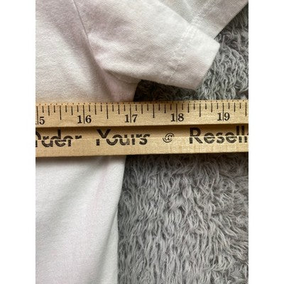 Iconic style converges in this H&M Divided Kurt Cobain graphic T-shirt. A black-and-white portrait of the legendary musician, overlaid with his name in bold red, creates a visually striking focal point. The crisp white backdrop ensures the design pops, making it a standout piece for any wardrobe. Note the small flaw on the front of the shirt. Perfect for casual outings, music festivals, or layering under a jacket for a touch of edgy flair.