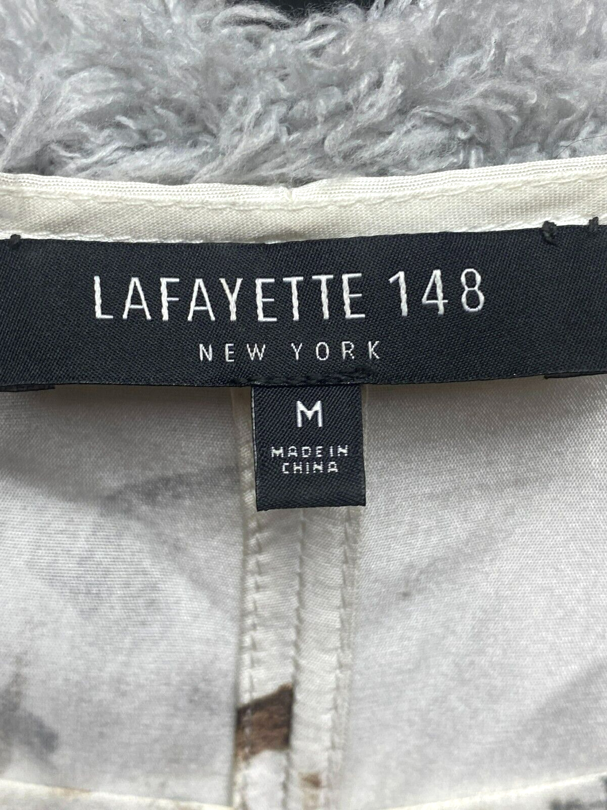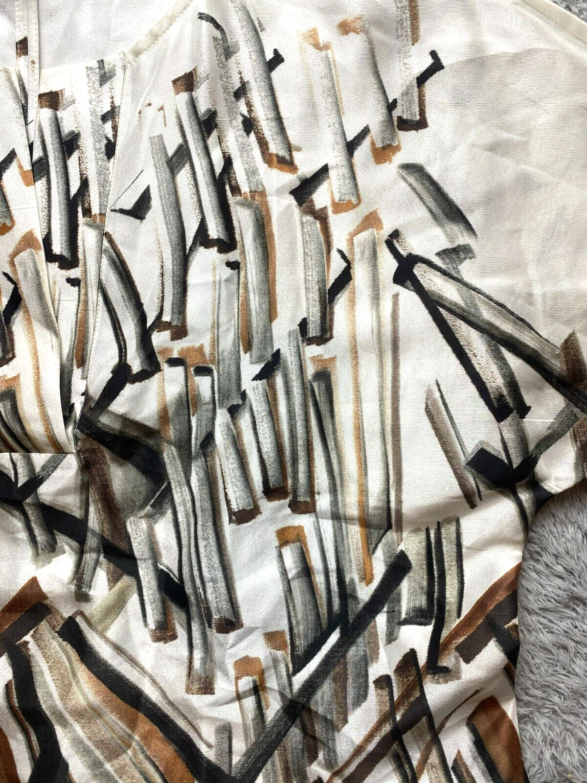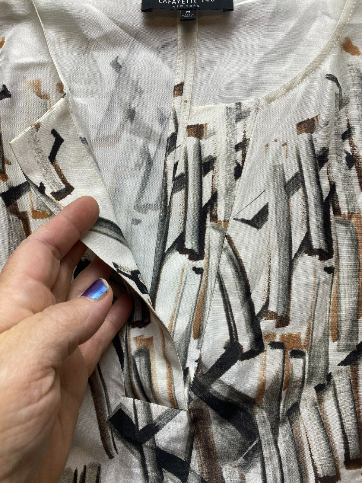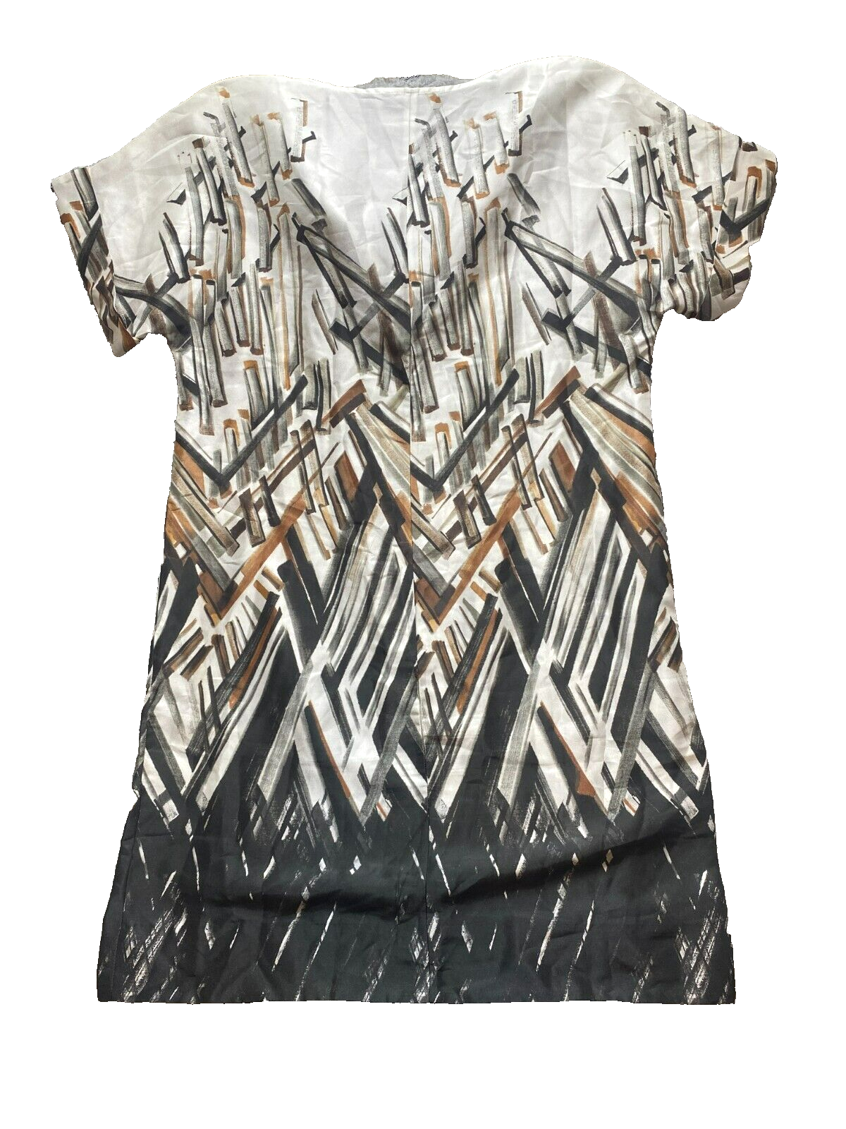 Lafayette 148 Dress Womens Medium Ivory Brown Black Geometric Silk Sheath Hippie