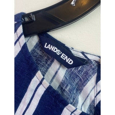 Lands End Dress Womens 1XL Linen Nautical Costal Beachy Sleeveless Stripes