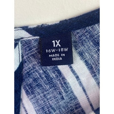Keywords: Lands' End, Womens Dress, Plus Size Dress, Striped Dress, Linen Dress, Sleeveless Dress, Summer Dress, Casual Dress, Navy Dress, White Dress, 1X, 16W-18W, Vacation Dress, Beach Dress