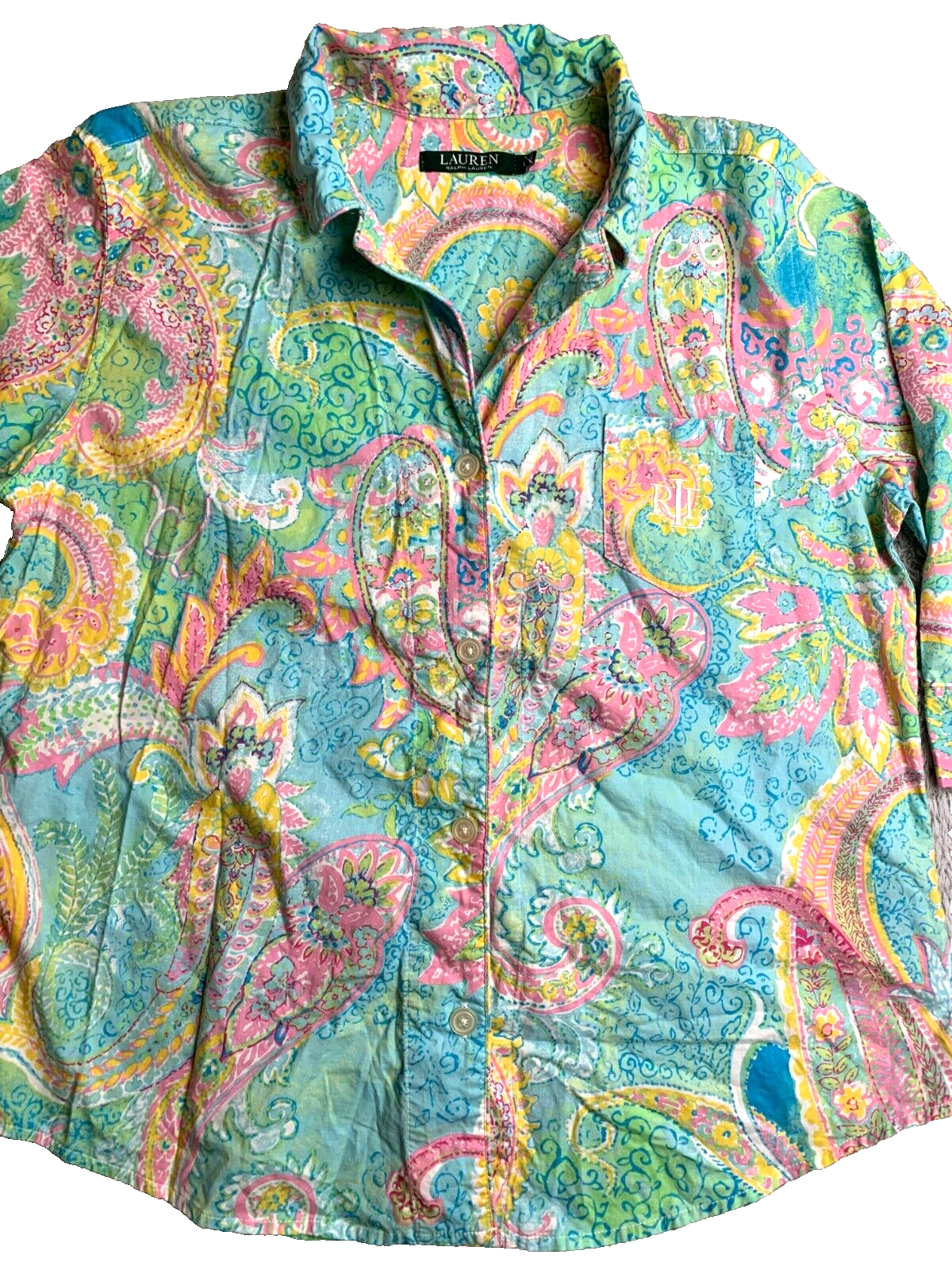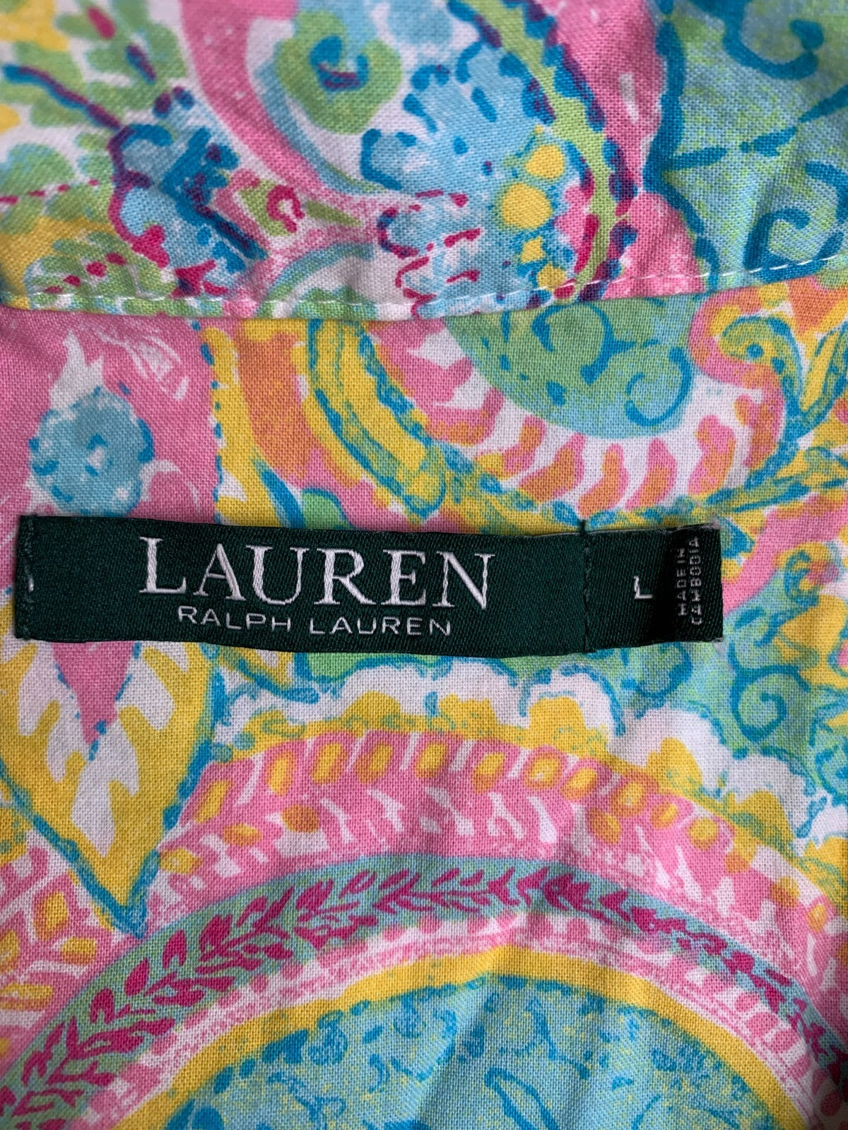 Lauren Ralph Lauren Shirt Womens Large Green Pink AOP Paisley Oversized Ladies