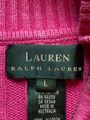 Lauren Ralph Lauren Sweater Womens Large Pink Cable Knit Oversized Crest Logo